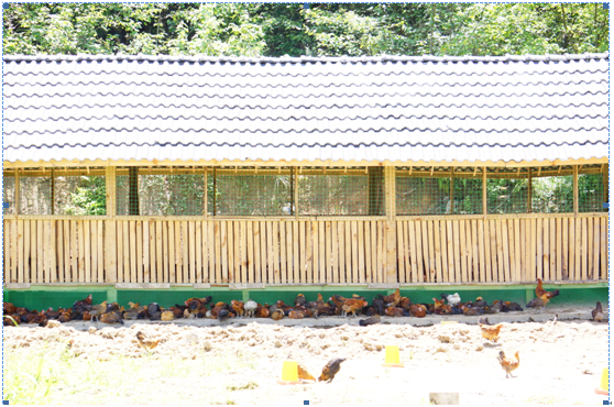 农场为给散养鸡创造舒适的环境,使鸡舍尽可能的满足散养鸡的生长需求,第一阶段的鸡舍建设已完工。建设大小鸡舍共计23栋,可供24000羽散养鸡生活。鸡舍充分利用果园、山林灌丛草地等环境,在尽量不破坏原有生态环境的基础上,就地取材而建设。充分给予最适宜的活动空间,使鸡的身心愉悦,促进生长。回归传统放养方式,引进现代养殖技术,遵循自然规律的循环养殖模式带来的将是生态和经济效益的双丰收,让大家享受到没有污染、健康绿色的农产品和生态环境。