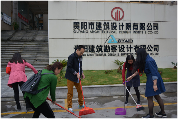 为进一步弘扬劳动精神、传播劳动理念,10月8日,贵阳建筑勘察设计有限公司携手驻地居委会,开展“走进企业,卫生大扫除活动”。活动中,公司员工和居委会工作人员三个一群,五个一伙,手提簸箕、扫帚、拖把,分区域沿公司二楼平台对路面堆放垃圾和垃圾死角等进行全面大清扫。