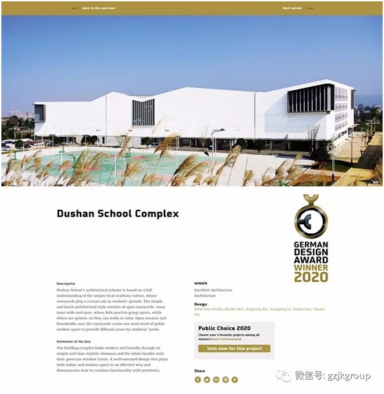 这是继车田村文化中心获得2018年德国国家设计奖建筑设计类最高奖——唯一金奖(系迄今为止唯一获得此奖项的中国建筑师团队),贵安新区大学城消防应急救援中心获得2018年德国国家设计奖建筑设计类——优胜奖,龙门文化中心获得2019年德国国家设计奖建筑设计类——优胜奖(系十名优胜奖之一,中国唯一入选团队)之后,我司西线建筑规划设计研究院作品连续三年5次获得德国设计委员会的直接提名。