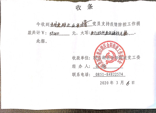 截至捐款结束,贵州建勘企业集团共计收到捐款39000余元,并立即上缴于上级党委。