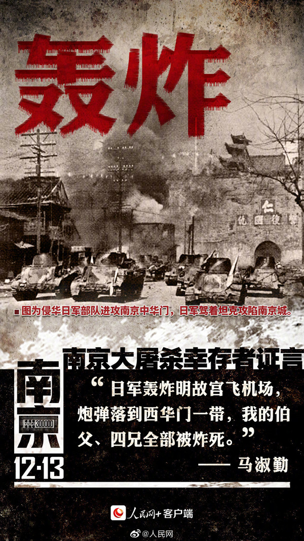 1937年12月13日,日军侵占南京烧杀抢掠、无恶不作,经过六个星期的血腥屠杀,被杀害的中国平民和被俘军人达30多万人,古都南京沦为人间炼狱。
