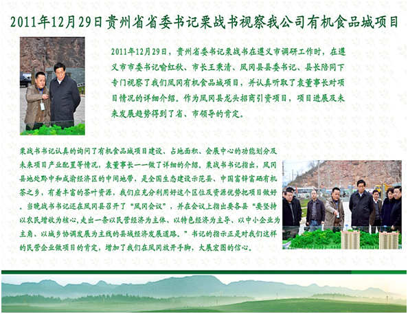 2011年12月29日贵州省省委书记栗战书视察我单位凤冈有机食品城项目