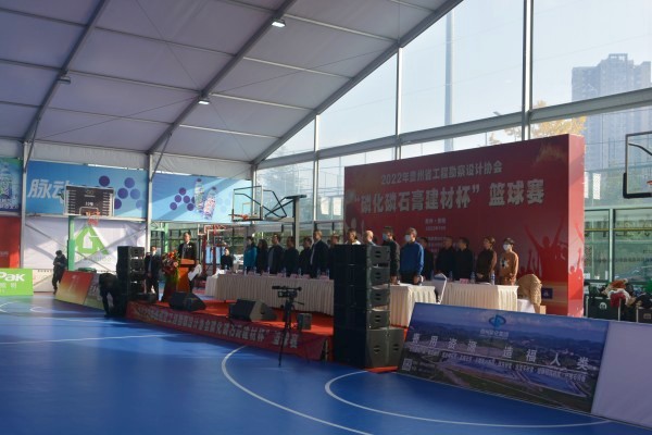 为丰富企业干部职工文体生活,增强身体素质,以竞技活动提振精神、凝心聚力,11月26日上午9时30分,由贵州省工程勘察设计协会主办的2022年贵州省勘察设计协会“磷化磷石膏建材杯”篮球赛在贵阳奥体匹克体育中心篮球场精彩开幕。