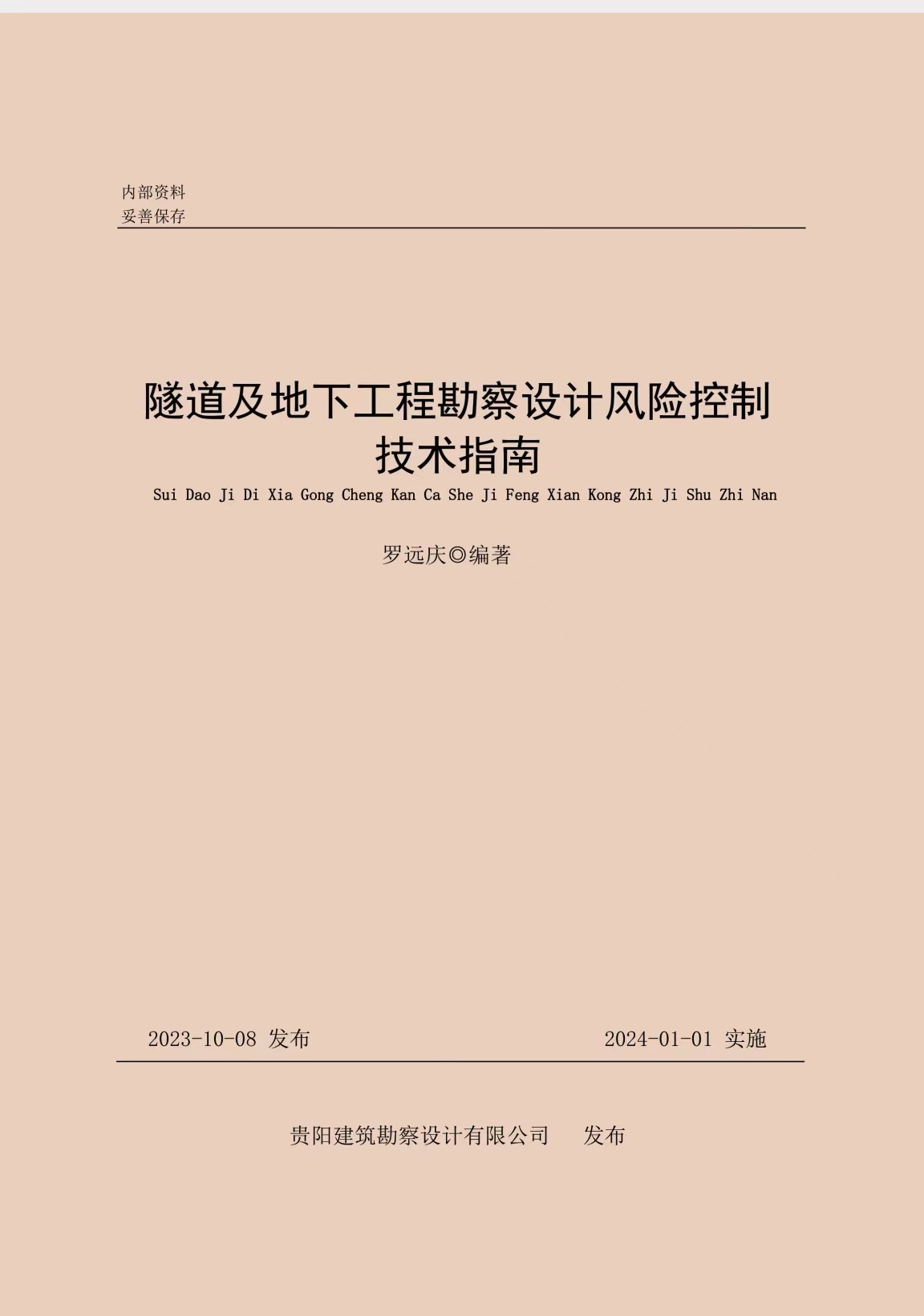 贵阳建筑勘察设计有限公司副总工程师罗远庆编著的《隧道及地下工程勘察设计风险控制技术指南》为公司级技术指南,2024年1月起实施。