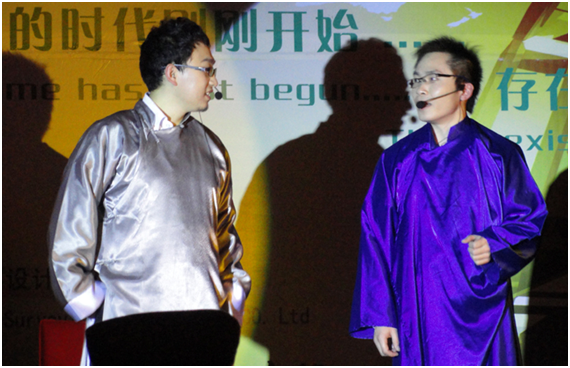 随后,西线年轻的建筑师们自编自导自演的大型文艺演出拉开序幕。双簧、舞台剧、小品、舞蹈、诗歌、独唱等等节目精彩纷呈。