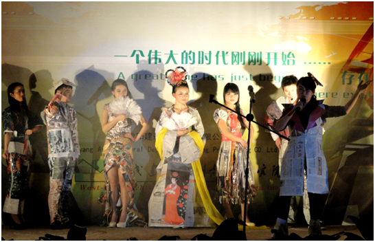 虽然演技略显羞涩,舞姿不够专业,但“大时代”等节目(用报纸、挂历做成演员服装,展现自唐朝、清朝、民国、大上海、红卫兵、新中国、改革开放以来各个时期的人物特色,极具历史感),充分展现了西线设计人才创新而又充满朝气的心灵境地。