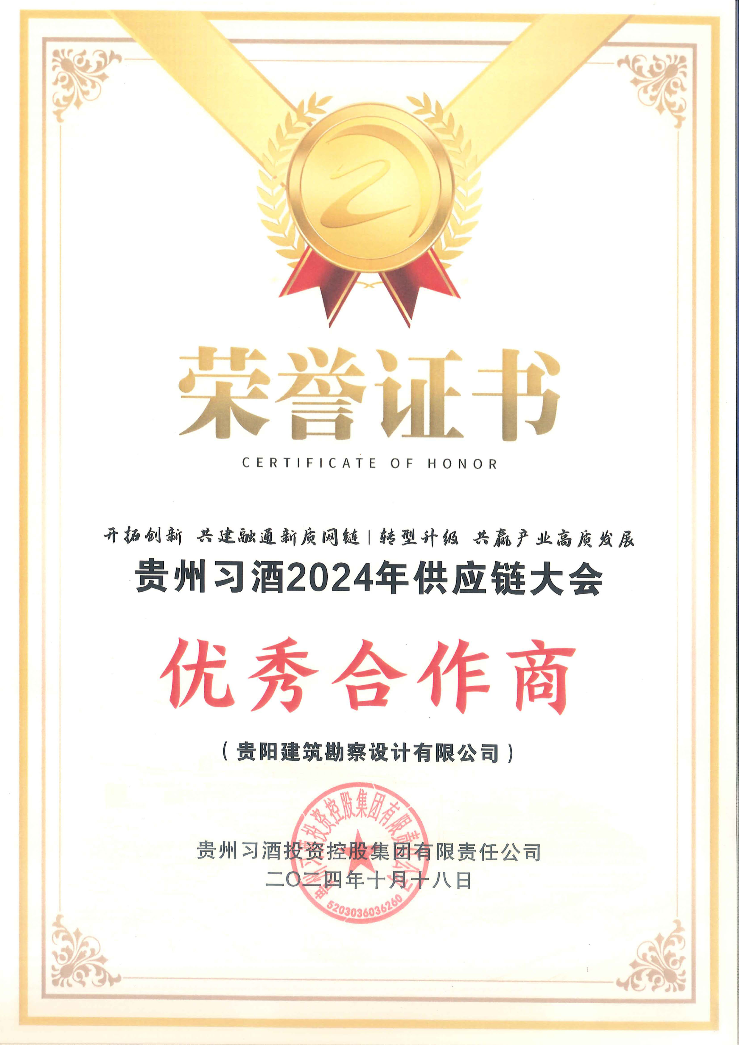 贵阳建筑勘察设计有限公司在习酒2024年供应链大会中,被选为“优秀合作商”。