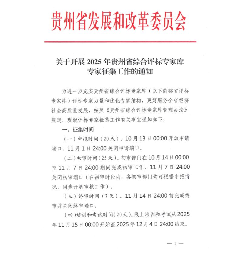 2025年贵州省综合评标专家库专家征集工作的通知